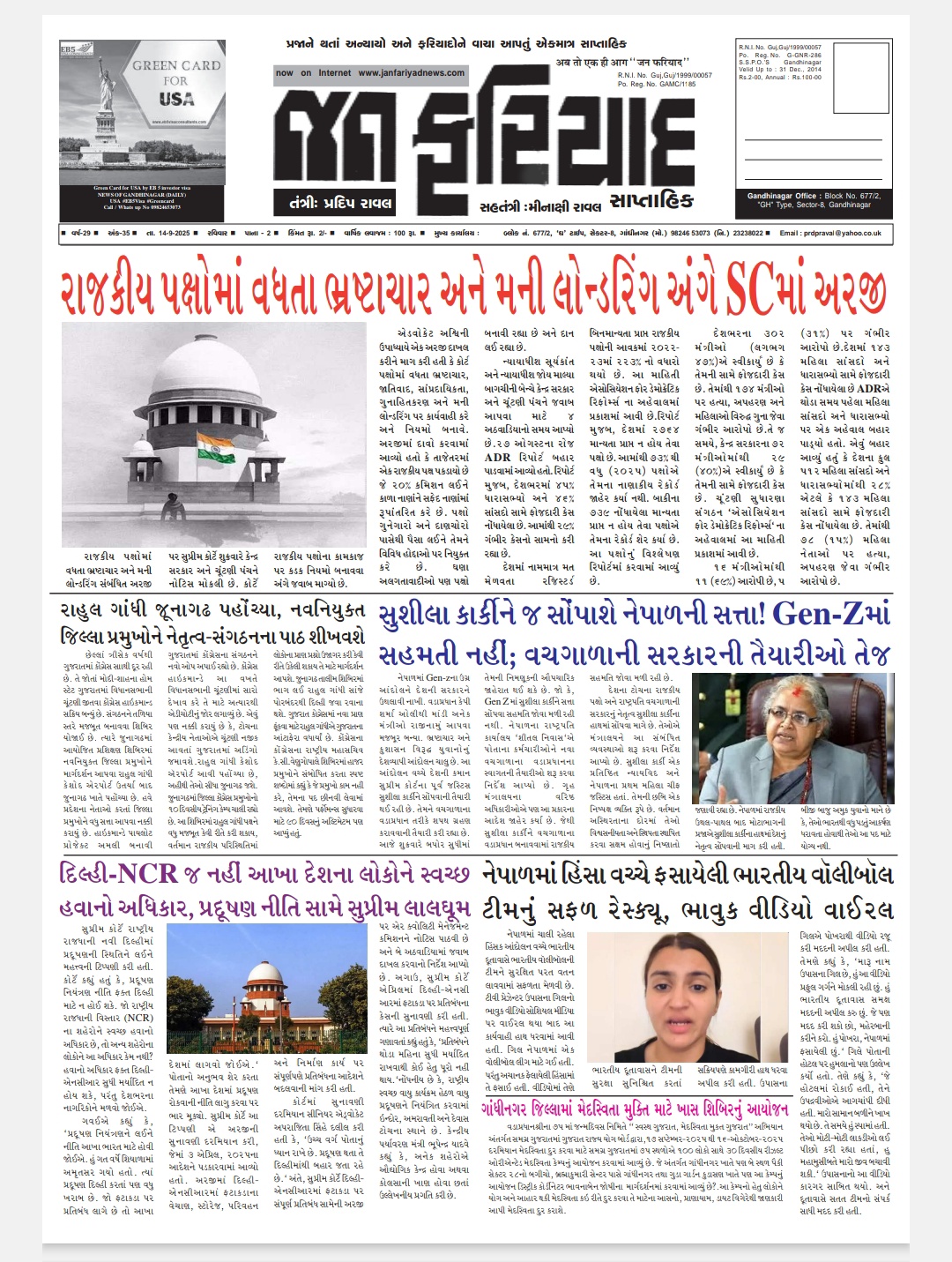 14.સપ્ટેમ્બર.2025 ન્યૂઝ ઓફ ગાંધીનગર દૈનિક, જન ફરિયાદ સાપ્તાહિક પીડીએફ જુવો.(ગુજરાત રાજ્ય માહિતી ખાતાના ગાંધીનગર જિલ્લા સહિત સમાચારો)janfariyadnews youtube channel links જૂવો.