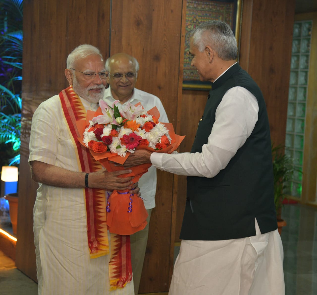*પ્રધાનમંત્રી શ્રી નરેન્દ્રભાઈ મોદીનું રાજ્યપાલ શ્રી આચાર્ય દેવવ્રતજીએ રાજભવન ખાતે ઉષ્માભર્યું સ્વાગત કર્યું*